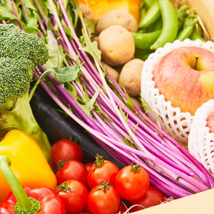 野菜ソムリエ厳選の全国各地の産直野菜を8種と、+ONEとして季節の果物や加工品が1品セットになったセットです。品目は毎月お任せいただき、お届けさせて頂いています。